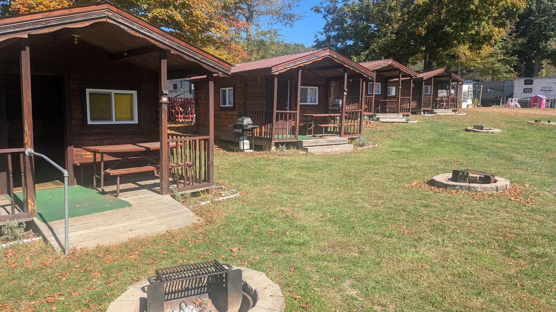 Campbell Campground offers several modestly priced 'primitive' cabins. Electrified but no AC or water it offers a more camping style
