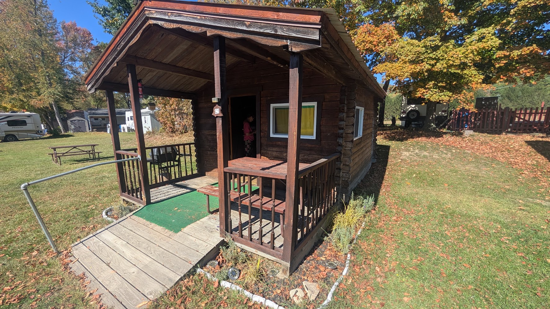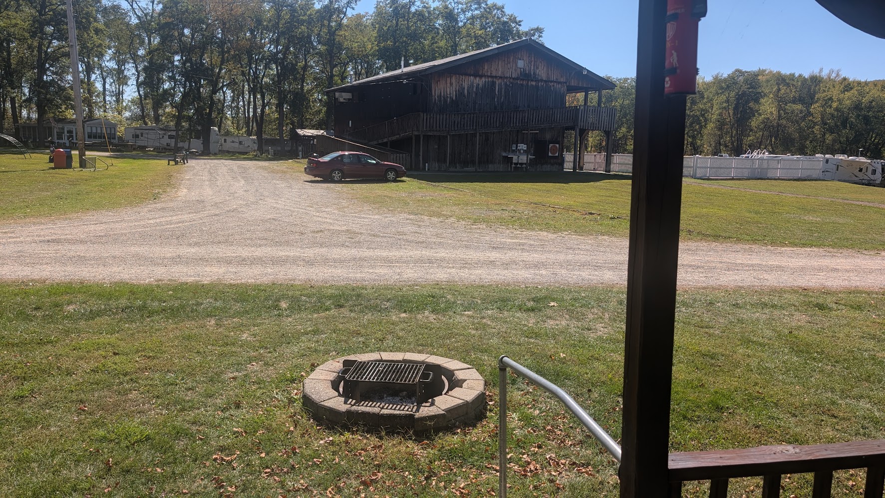 accommodations. The close proximity to the bathroom, showers, dance hall (see photo) bring the same convenience as the other campers.